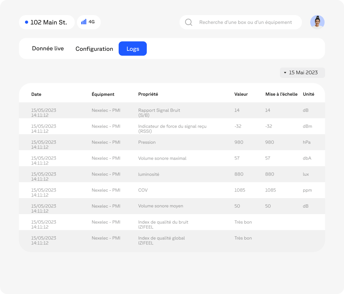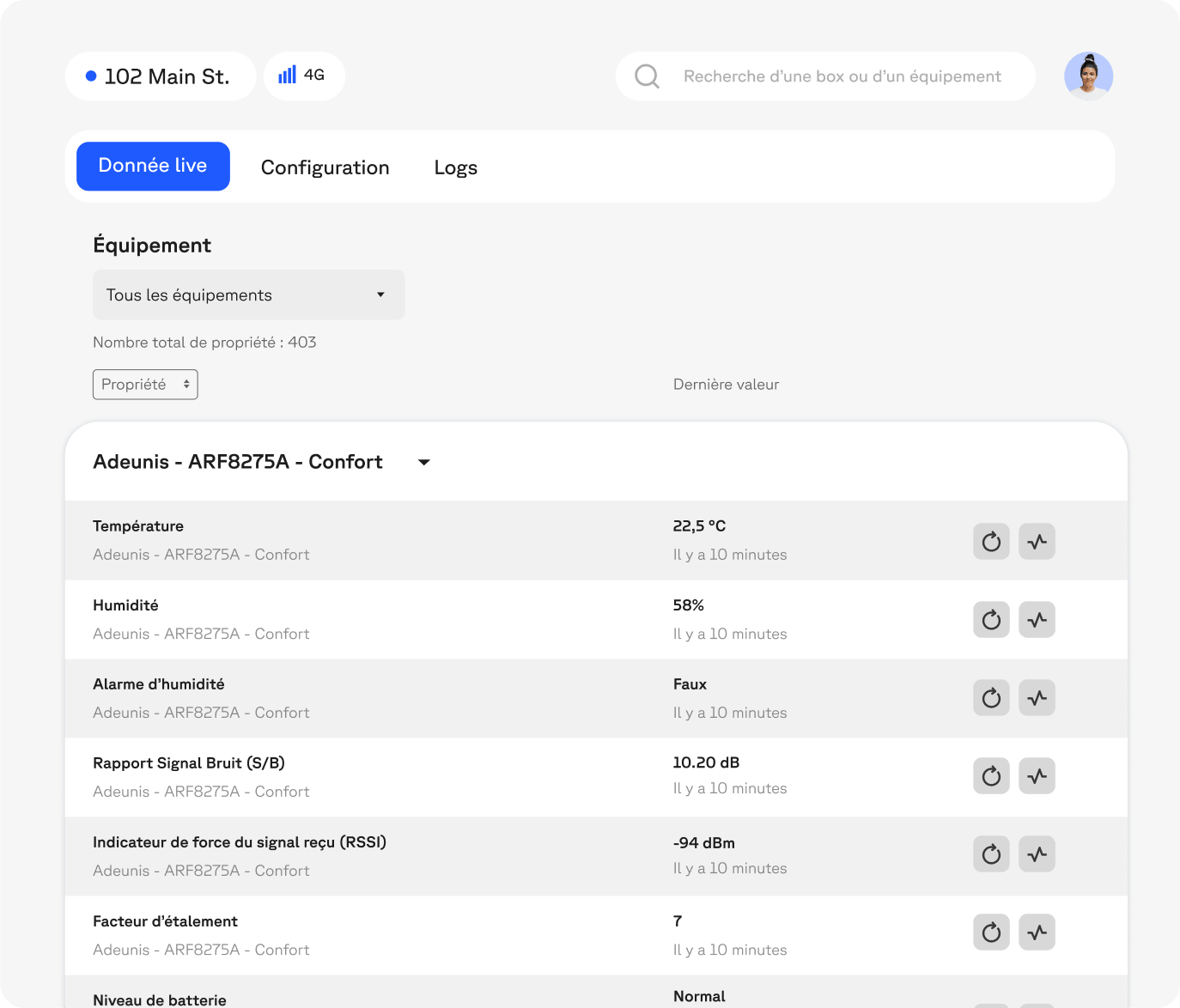 Sur la console Bridge, les utilisateurs peuvent configurer leur équipement à distance et accéder à des données et des logs en temps réel. Les données ne sont pas stockées sur le serveur de Wattsense.